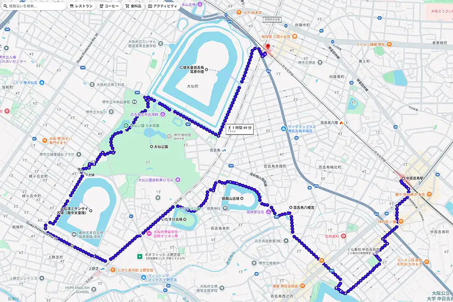 仁徳天皇陵古墳付近にも小さい古墳がいくつかあったのですが、カロリー的に朝食分を完全に消化してしまっており、ヘロヘロだったので見なかったことに。
