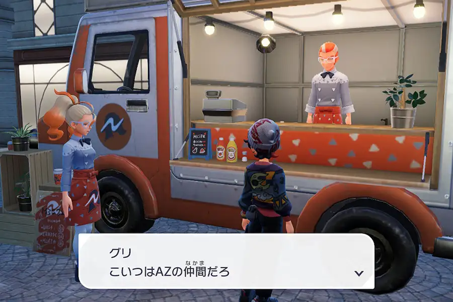 キッチンカーの隣にリザードンいるし、フレア団、髪色から炎タイプ使いなことはまるっとお見通しだ!!!