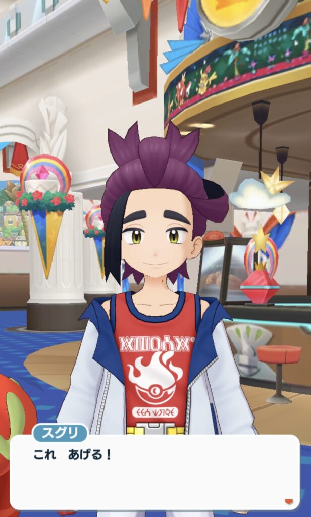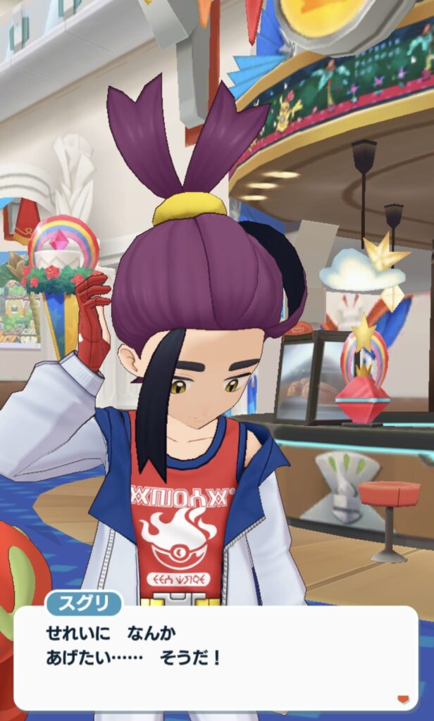 ホーム画面でアイテムをくれるスグリ君にちょっとドキッとする。